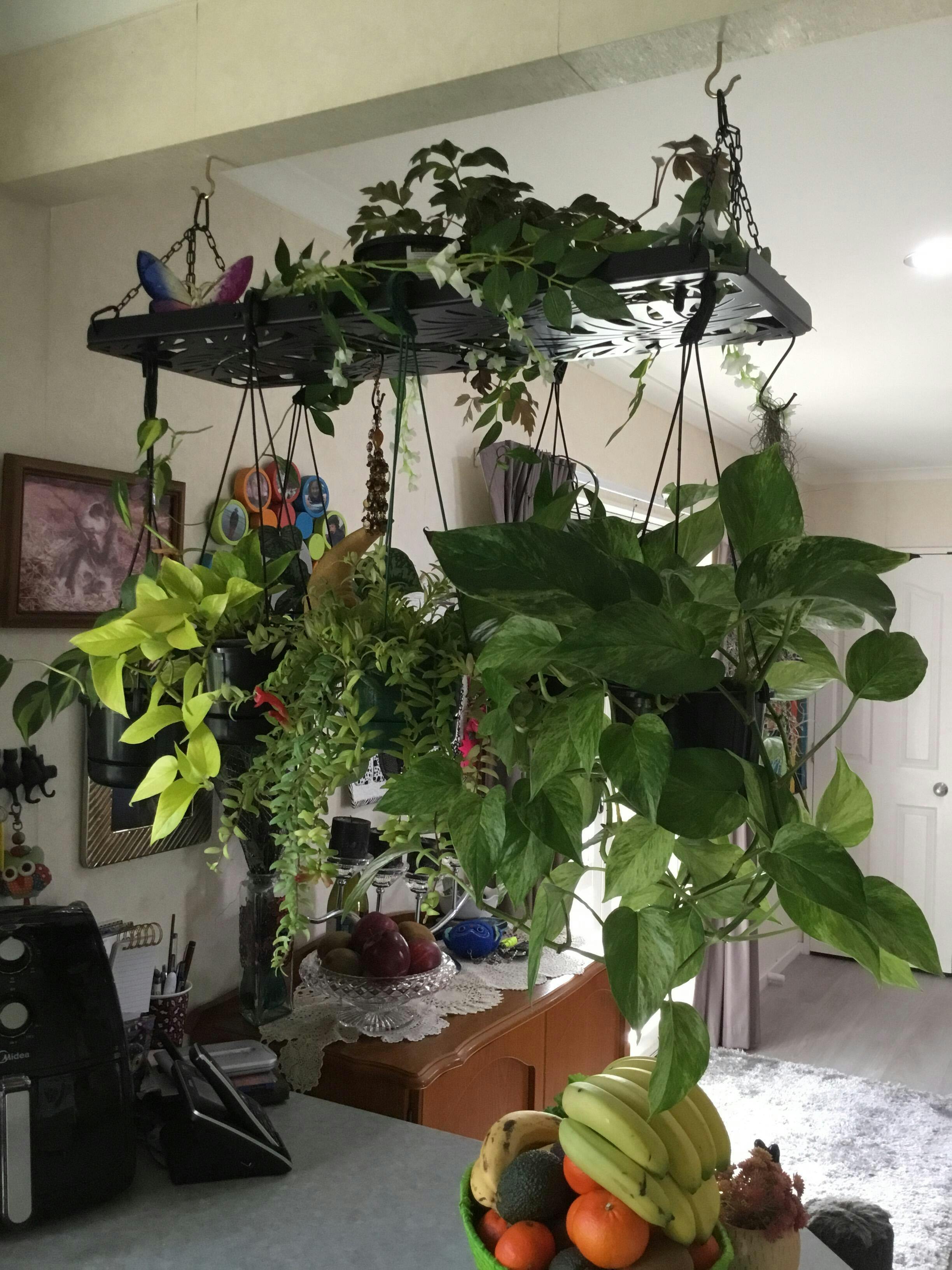 Buy appropriate ceiling fittings to support the rack (4 kg) plus up to 12 kgs of planters and plants.